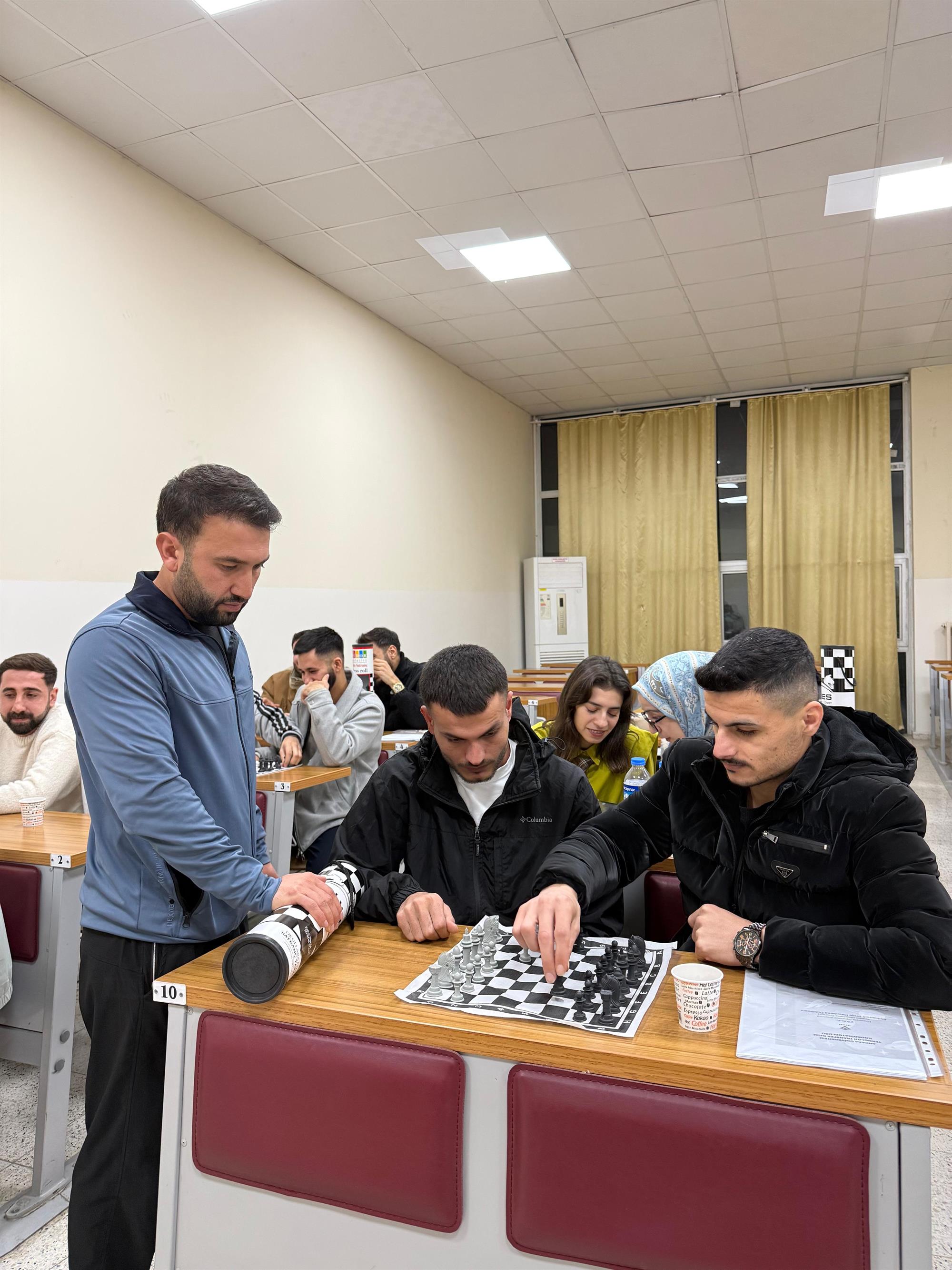Üniversitemiz Sağlık Kültür ve Spor (SKS) Daire Başkanlığı ile Beden Eğitimi ve Spor Yüksekokulu (BESYO) ortaklığında düzenlenen Satranç Turnuvası, öğrencilerimizin ve personelimizin yoğun katılımıyla büyük bir heyecan içerisinde gerçekleştirildi.